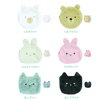 ▶Info: ポーチ どうぶつたちのかわいいポーチ くまさん、ウサギさん、ねこさんのふわもこのかわいいポーチ♪