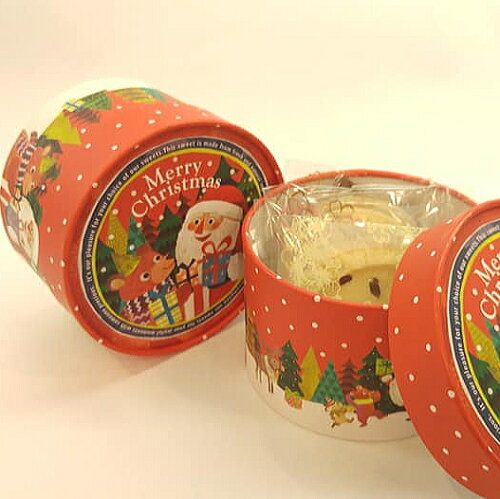 ●商品説明 さくさくクッキーが入った紙製の丸いボックスに入ったクッキー 子供への贈り物にもぴったり!かわいいラッピングで仕上げたクリスマスギフト、贈り物に、冬ギフトに ●内容量 缶1個、ママンズクッキ5枚入(全7種類の中から5 種類を選んでお詰め合わせいたします)クッキーの大きさ 約幅70mm×高さ60mm厚み10mm 箱の大きさ 120mm×高さ85mm ●原材料 小麦粉、バター、乳製品、砂糖、卵、ショートニング、チョコレート、ココア、アーモンド、シナモン、チーズ、ドライフルーツ ●消費期限 31日間 ちょっとオシャレでお手頃なクリスマスプレゼントです! クリスマスのプレゼントに! かわいいラッピングでお届け クッキーボックス★